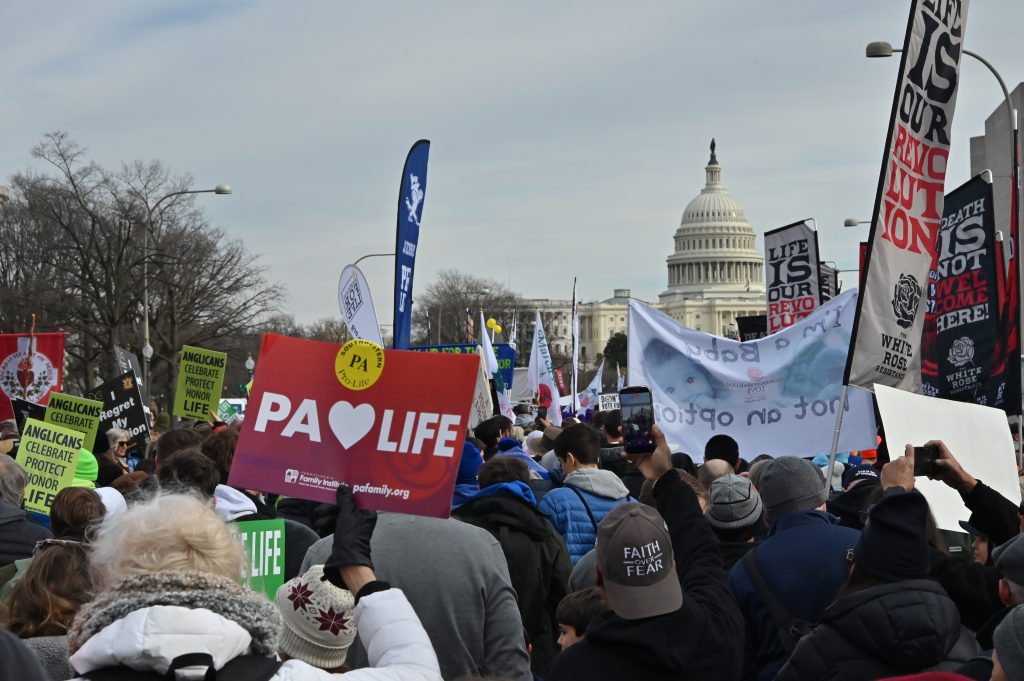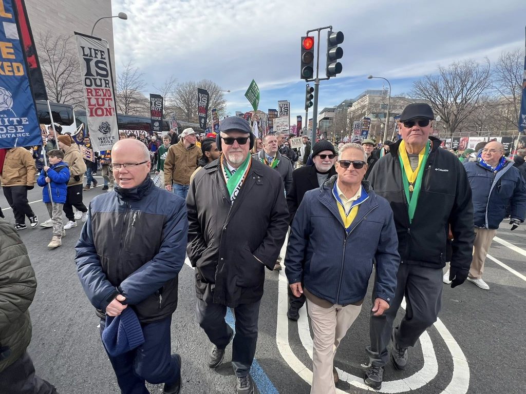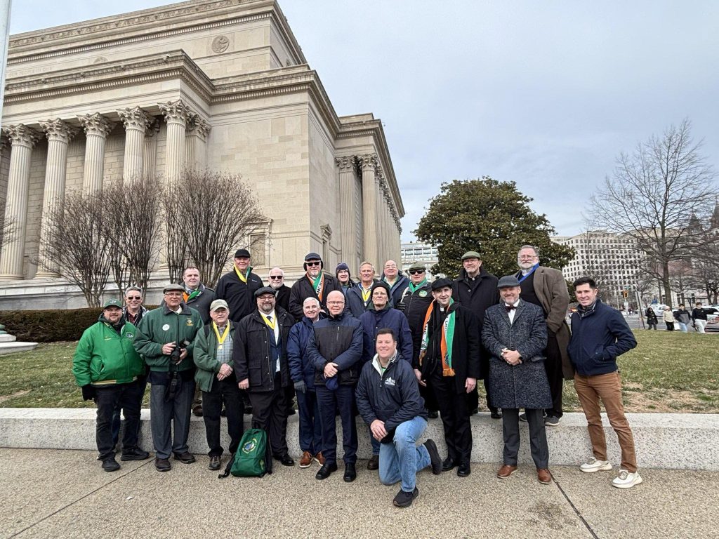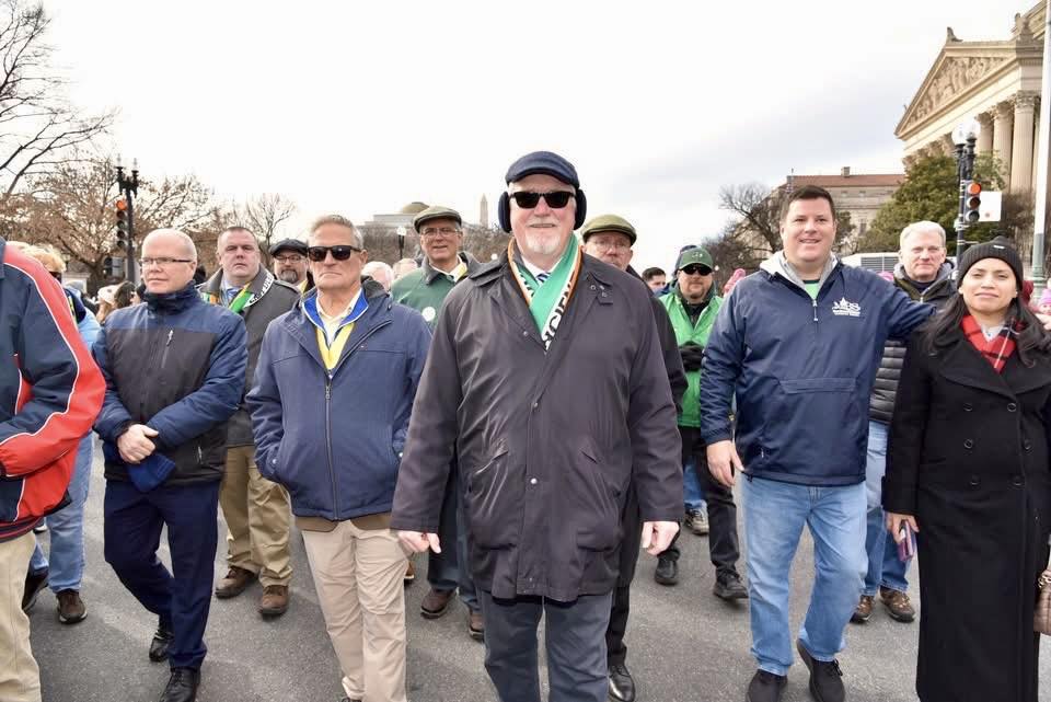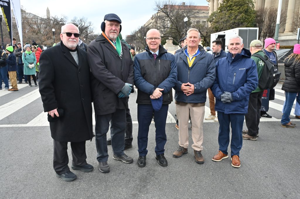 Hibernians from across the country gathered in Washington, DC on January 22nd and 23rd to participate in the Annual March for Life in Washington, DC. Crowd estimates range from tens of thousands to 150,000, including members of the AOH National Board and Pro Life Chairman from Pennsylvania, Illinois, North Carolina, Florida, Maryland, New York, Virginia, and Washington, DC. On Thursday afternoon, the Basilica of the Shrine of the Immaculate Conception hosted the Angelus at 4:45 PM followed by Holy Mass at 5:00 PM. The congregation was several thousand strong and consisted of predominantly high school and college students, as well as hundreds of con-celebrating clergy from across the country, including past AOH National Chaplain Bishop John Keener. After Mass, Hibernians met at the Dubliner Restaurant and Pub for dinner and refreshments. Also at the Dubliner for dinner was Frank Pavone of Priests for Life, along with his staff.