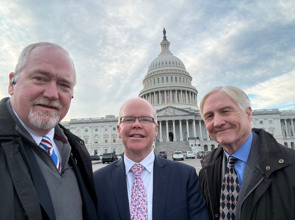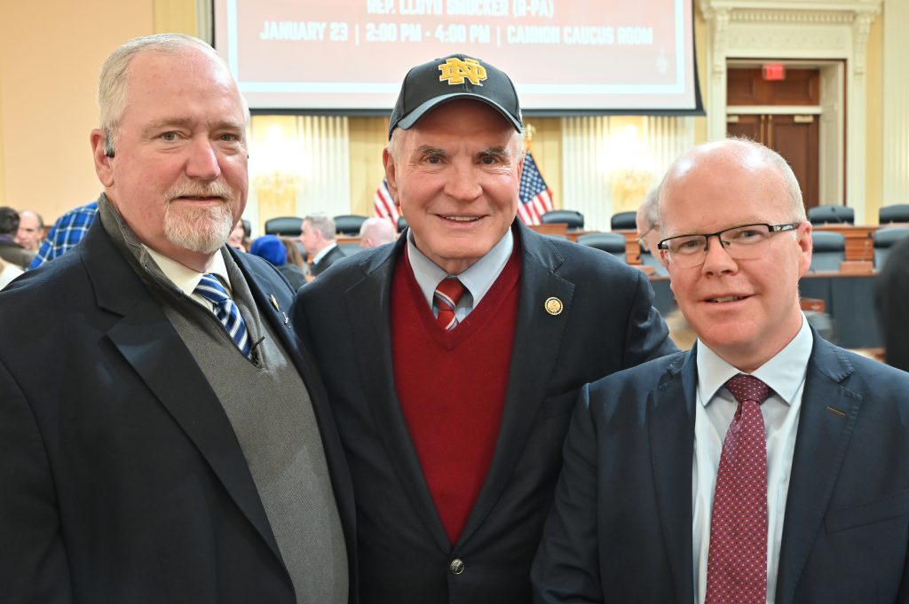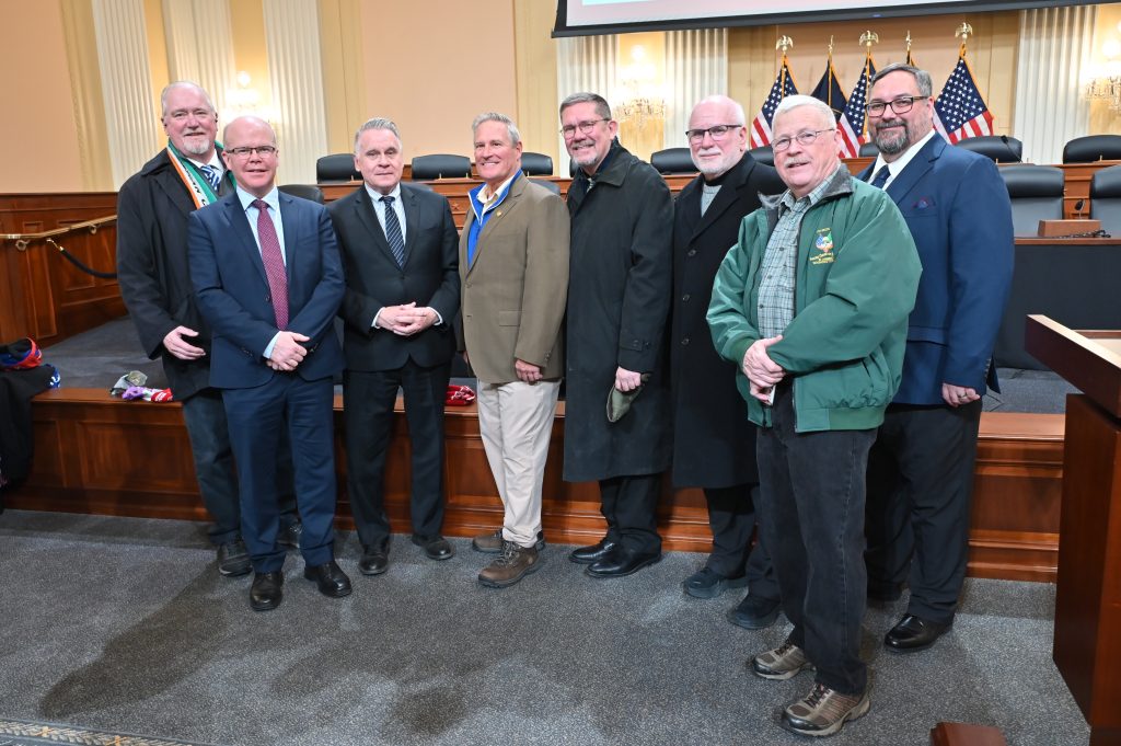 After Mass, Hibernians congregated at the corner of 7th Street NW and Constitution Avenue awaiting step off for the March scheduled for 1:00 PM. It was actually a few minutes after 2:00 PM when the first contingent marched through the intersection and the Hibernians fell in behind them for the March. Upon reaching the Cannon House Office Building, members of the National Board, along with Bishop Keener and Peadar Tóibín, peeled off to attend a Pro Life reception hosted by U.S. Representatives Mike Kelly of Pennsylvania and Chris Smith of New Jersey. Attendees enjoyed an assortment of snacks and refreshments before the formal presentation by the Representatives. Bishop Keener was called upon for a Benediction and Blessing, and Peadar Tóibín was personally introduced to the Representatives. Peadar was very pleased to meet Representative Kelly, who serves as the Congressional Friends of Ireland Caucus Co-Chair. After the reception, Hibernians circled up at the Dubliner for refreshments and camaraderie after a very busy and productive day.