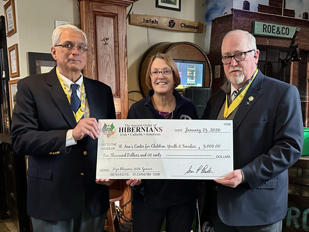 The AOH presented a $5,000.00 check to St. Ann’s Center for Children at the AOH March for Life Breakfast.